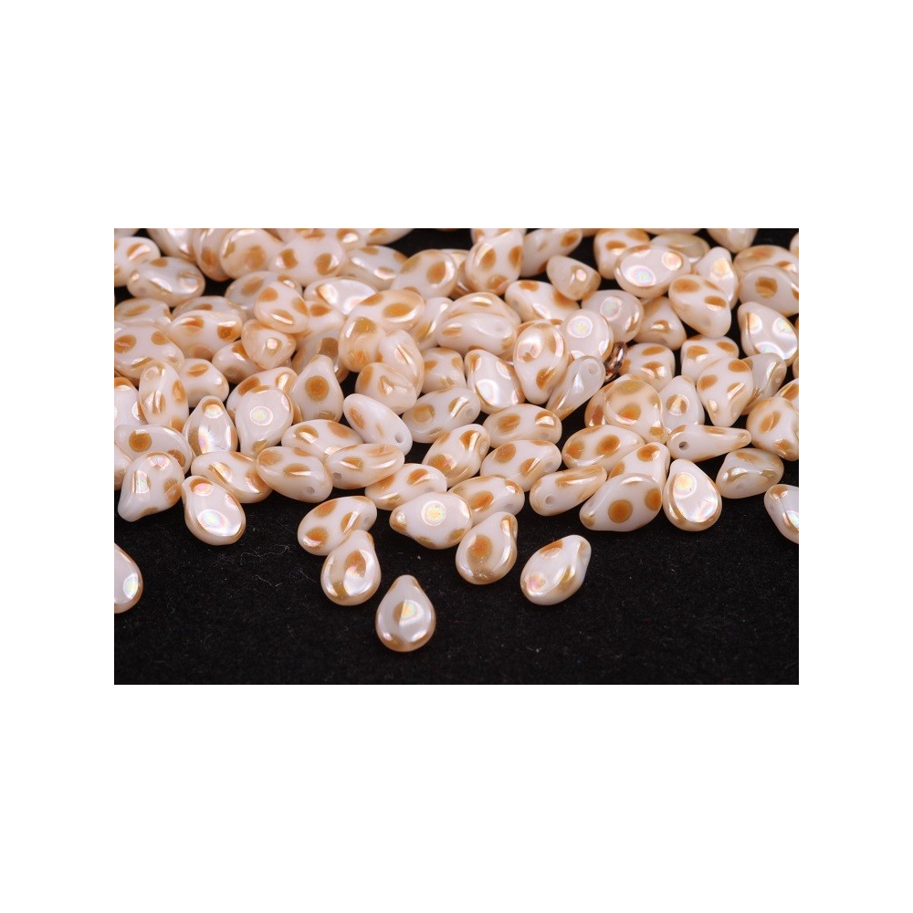 Mačkané korálky Preciosa Pip™ 5 x 7 mm White Alabaster, Beige Dots 02010/2912X