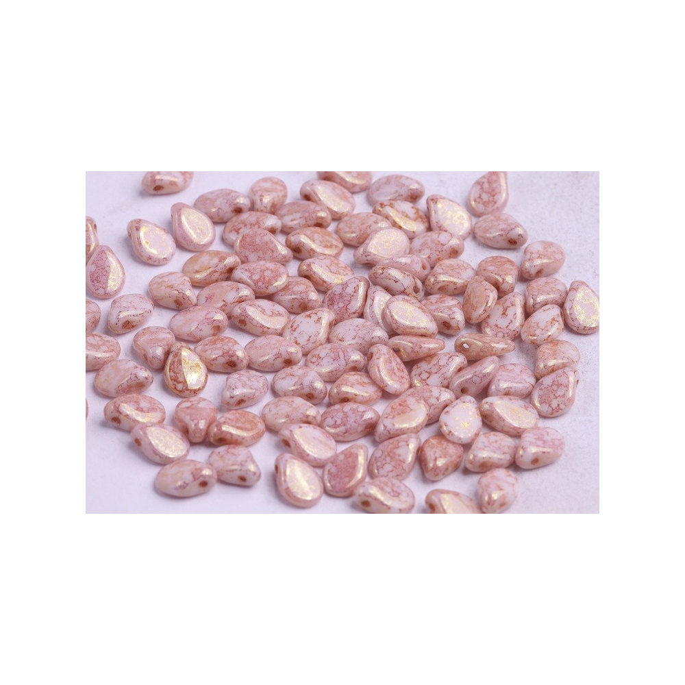 Mačkané korálky Preciosa Pip™ 5 x 7 mm White Alabaster, Gold Luster 02010/14497 Velikost: 5 x 7...