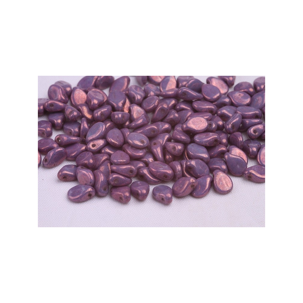 Fialové mačkané korálky Preciosa Pip™ o rozměru 5 x 7 mm představují unikátní asymetrický tvar lístku či kapky s centrálně umístěným otvorem o průměru 0,8 mm. Tento specifický design z dílny Preciosa, využívající tradiční české sklo, umožňuje vytvářet bohaté reliéfní povrchy a 3D efekty, které jsou v moderním korálkování vysoce ceněny pro svou originalitu. Díky povrchové úpravě Vega získává skleněný základ hluboký kovový odlesk, který v designu výborně doplňuje Preciosa Twin dvoudírkové korálky při tvorbě složitých šitých šperků.