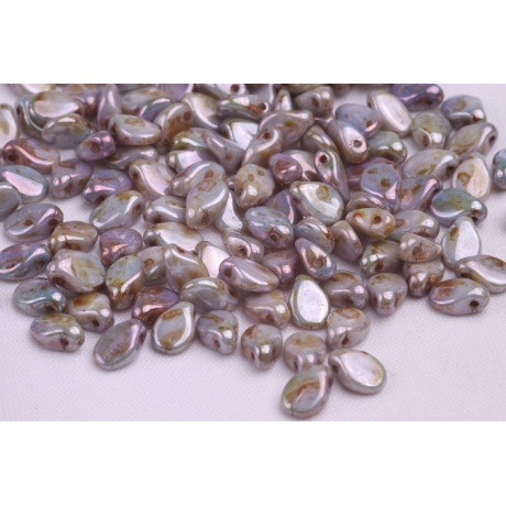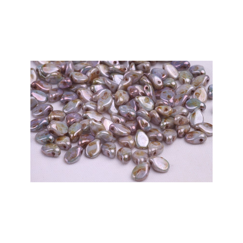Mačkané korálky Preciosa Pip™ 5 x 7 mm White Alabaster, Pearl Pastels/Anthracite 02010/25037...