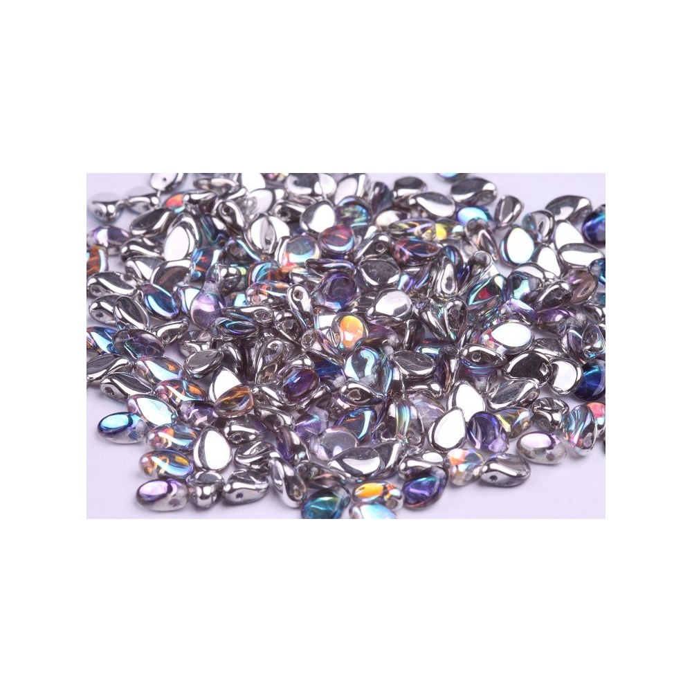 Mačkané korálky Preciosa Pip™ 5 x 7 mm CRYSTAL SILVER RAINBOW 00030/98530