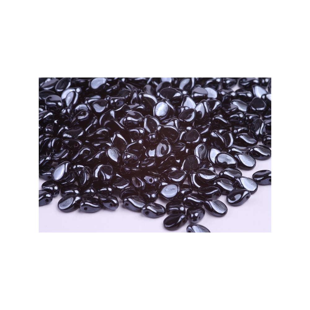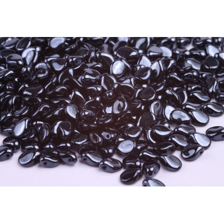 Mačkané korálky Preciosa Pip™ 5 x 7 mm Black Opaque, Blue Hematite, Full 23980/20600