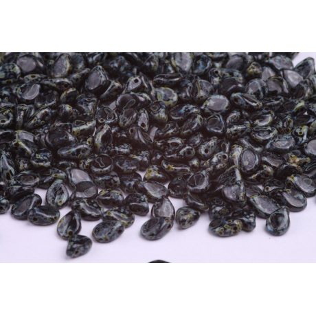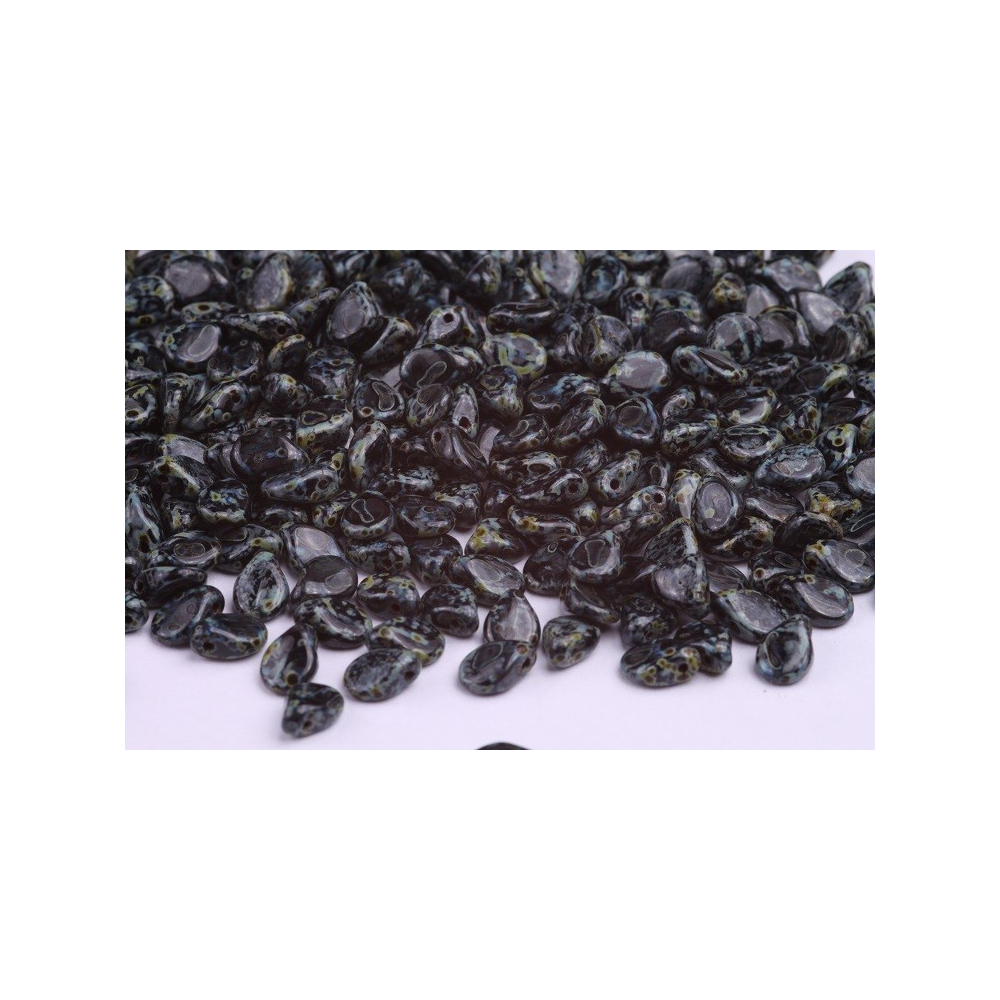 Mačkané korálky Preciosa Pip™ 5 x 7 mm Black Opaque, Travertine 23980/86805