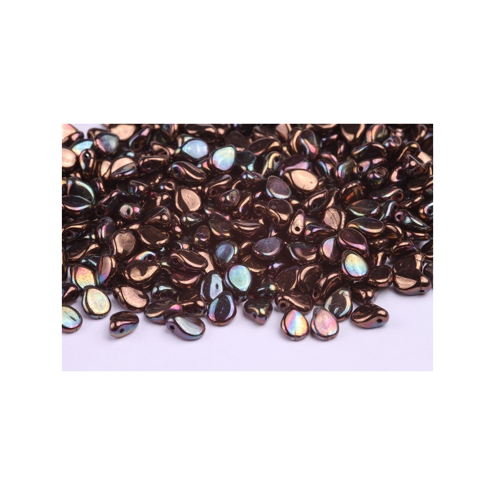 Hnědé korálky Preciosa Pip™ o rozměru 5 x 7 mm vynikají svým asymetrickým tvarem připomínajícím drobné okvětní lístky nebo kapky. Sytý čokoládový základ s označením barvy 23980/15780 je obohacen o duhový odlesk, který na povrchu vytváří fascinující hru světla. Tyto skleněné korálky z dílny Preciosa jsou ideální pro vytváření plastických struktur a detailních prvků, které dodají vašim šperkům hloubku a charakteristický český půvab.
