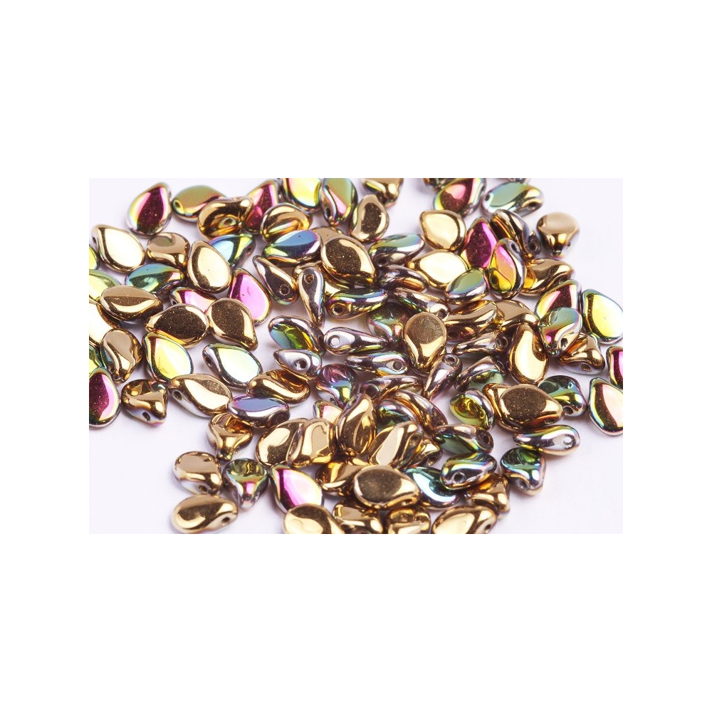Hledáte-li neotřelé struktury, Preciosa Pip a Preciosa Farfalle tvoří duo, které výrobce doporučuje pro jejich vzájemně se doplňující geometrii. Barva s kovovými odlesky a barevnými přechody zlaté, růžové a zelené barvy dodává každému kusu punc luxusu. Pro harmonický vzhled je zkombinujte s opálovými nebo mléčnými tóny, zatímco pro odvážný kontrast skvěle ladí se safírově modrou barvou.