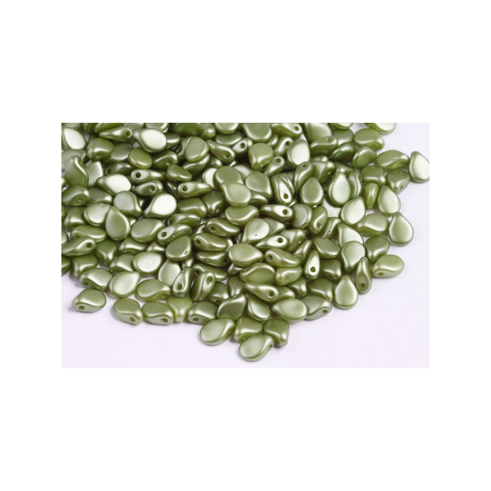 Mačkané korálky Preciosa Pip™ 5 x 7 mm White Alabaster, Pearl Pastels/Sage Green 02010/25034