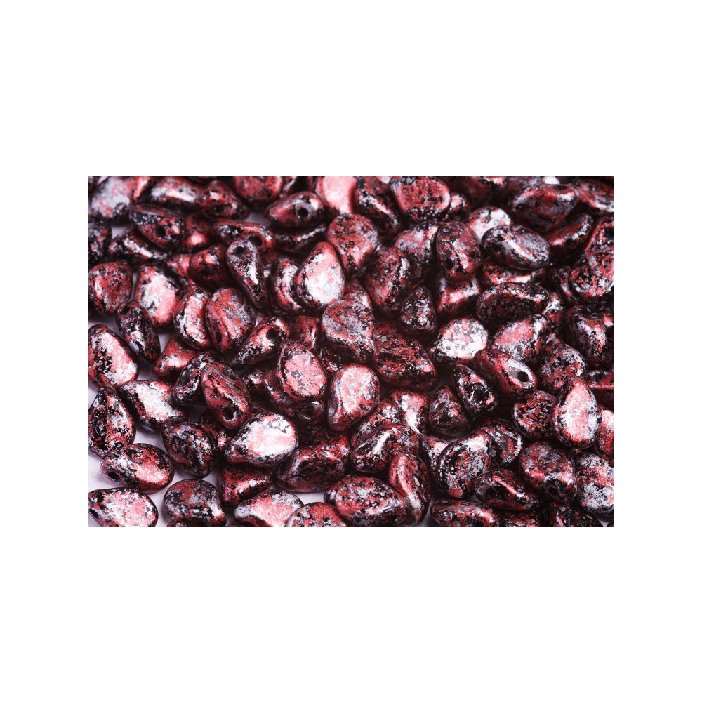 Mačkané korálky Preciosa Pip™ 5 x 7 mm Black Opaque, Granite Red 23980/45705