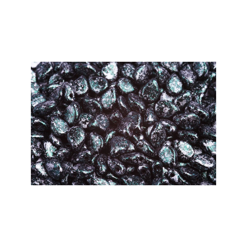 Mačkané korálky Preciosa Pip™ 5 x 7 mm Black Opaque, Granite Green 23980/45707