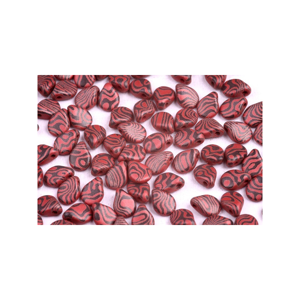 Červená barva v hlubokém tónu s organickým vlnitým dekorem definuje vizuální identitu korálků Preciosa Pip, které jsou nepostradatelným prvkem pro tvorbu texturovaných šperků. Tyto mačkané korálky o rozměru 5 x 7 mm vynikají svým tvarem ploché kapky či pecky, což designérům umožňuje vytvářet bohaté reliéfy připomínající přírodní struktury. Preciosa Twin výborně doplňuje Twin dvoudírkové korálky v prostorových schématech, kde Pip slouží jako elegantní zakončení nebo okvětní lístek.