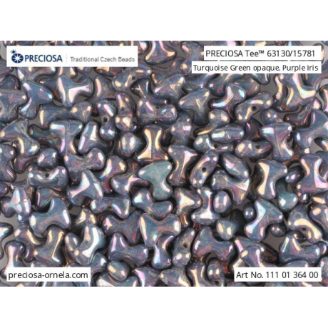 Tyrkysová barva s efektem Purple Iris definuje tyto skleněné korálky Tee™ o rozměru 2x8 mm z produkce tradiční české značky Preciosa. Tento specifický tvar disponuje středovým průtahem o velikosti 0,8 mm, který umožňuje pohodlnou práci s většinou standardních bižuterních návlekových materiálů. Při navlékání se jednotlivé dílky díky svému profilu do sebe zajímavě skládají a vytvářejí prostorové struktury, což ocení zejména pokročilé autorky hledající geometrickou variabilitu ve své tvorbě.