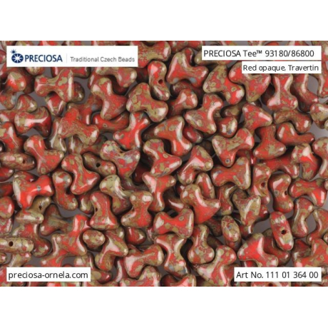 Rozměry 2x8 mm a precizní průtah 0,8 mm definují tyto skleněné korálky Tee™ z dílny Preciosa, které svým unikátním tvarem písmene T nabízejí nekonečné možnosti v geometrickém designu. Díky sytému odstínu RED OPAQUE TRAVERTIN s charakteristickým mramorováním získávají vaše projekty nádech starobylé elegance a hloubky. Skvěle se doplňují s dalšími tradičními prvky, jako jsou ohňovky (broušené korálky), se kterými tvoří pevné a stabilní struktury v prostorových špercích.