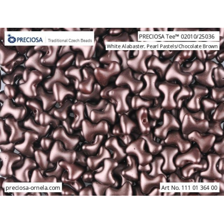 Čokoládově hnědý odstín s jemným perleťovým finišem v barvě Chocolate Brown dodává designům hřejivý a luxusní nádech. Rozměr 2x8 mm a specifický tvar písmene „T“ umožňují korálkům Preciosa Tee™ efektní skládání, kdy do sebe jednotlivé dílky při tvorbě kruhových mandal nebo bohatých náhrdelníků zajímavě zapadají. Tento typ korálků je mimořádně oblíbený pro svou univerzálnost v kombinaci s rokajlem Preciosa 8/0, se kterým vytvoříte dokonale vyvážené kompozice.