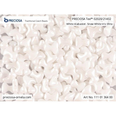 Sklářské řemeslo v srdci severních Čech, kde se tradice ruční výroby předává po generace, dalo vzniknout unikátnímu tvaru Preciosa Tee™. Tyto skleněné korálky svým profilem připomínají písmeno T a jejich bílá alabastrová barva evokuje čistotu čerstvě napadlého sněhu v Jizerských horách. Jemný povrch iris dodává každému kusu perleťový měňavý odlesk, který krásně ladí s opálovými nebo mléčnými odstíny pro dosažení snového a romantického vzhledu vašeho šperku.