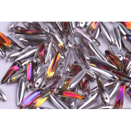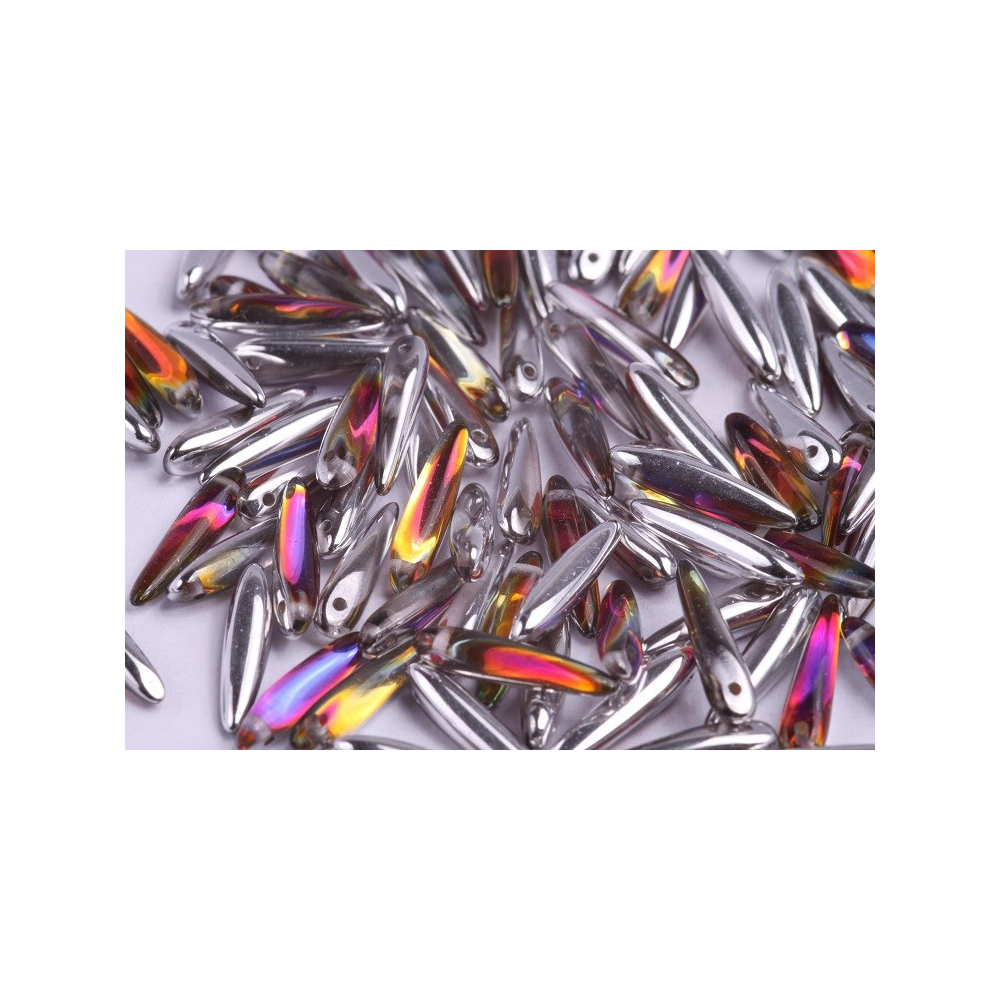 Dramatické hroty protínající světlo v nečekaných úhlech vytvářejí fascinující hru barev, která vdechne život každému autorskému projektu. Tyto mačkané korálky Preciosa Thorn™ o velikosti 5x16 mm vynikají svým štíhlým, hrotovitým tvarem, který je ideální pro tvorbu strukturálních šperků a prostorových efektů. Povrchová úprava Crystal Volcano na čirém základě vytváří hypnotické záblesky fialové, oranžové a zlaté barvy, díky čemuž šperk mění svůj vzhled při každém pohybu. Pro jemné dozdobení okrajů nebo vytvoření hustých třásní se skvěle hodí drobný rokajl Preciosa, který podtrhne eleganci těchto výrazných hrotů.