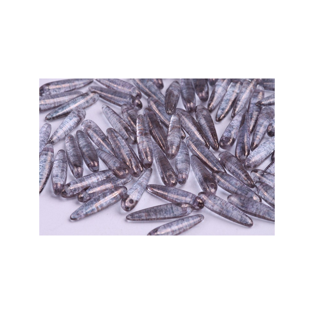 České skleněné korálky jazýčky 5 x 16 mm Průtah: 0,7 mm Balení: 16 ks Barva: šedá Materiál: sklo...