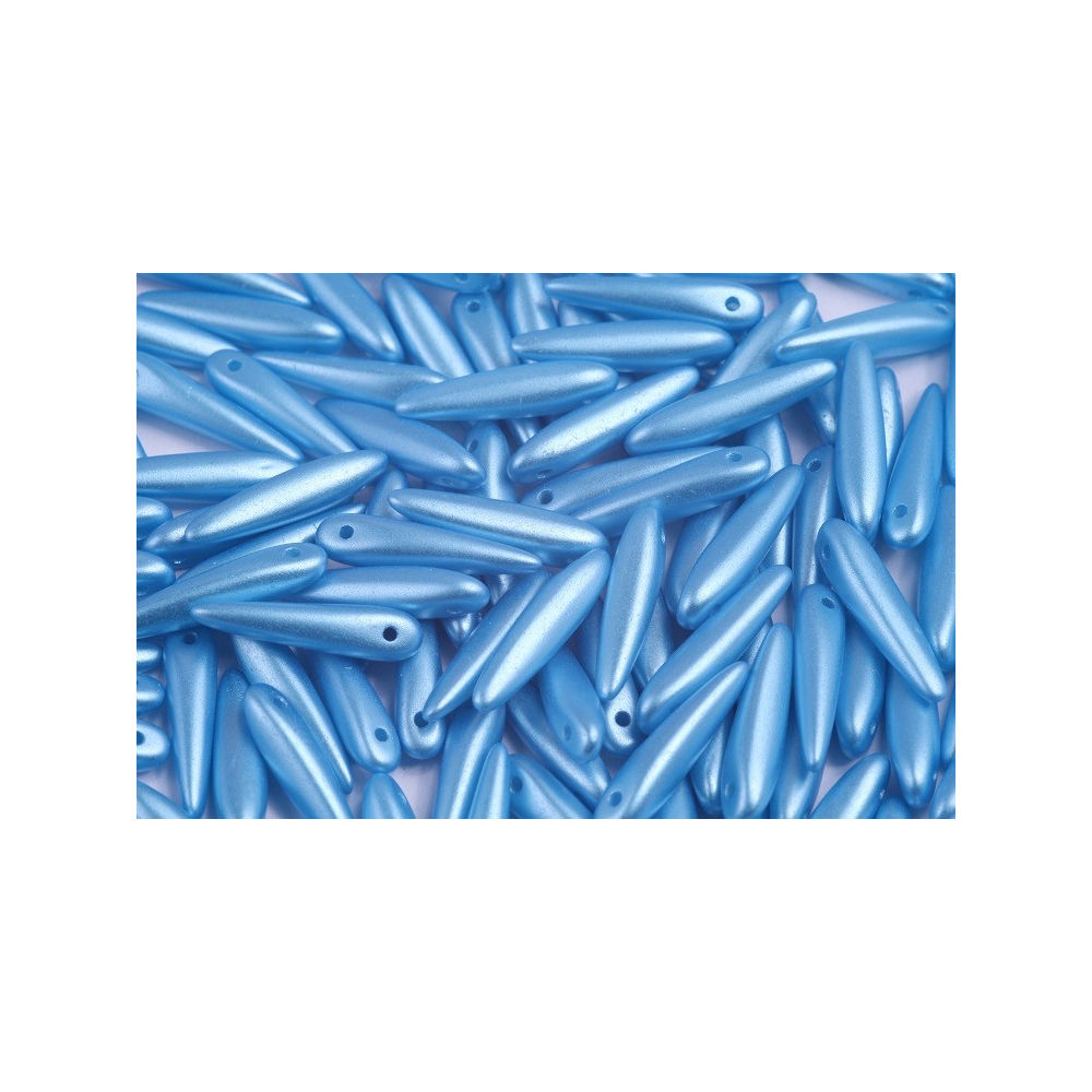 Mačkané korálky Preciosa Thorn™ ve tvaru štíhlého ostnu vnášejí do bižuterní tvorby dynamiku a neotřelou geometrii. Tato pastelově tyrkysová varianta o rozměru 5x16 mm s jemným hedvábným povrchem se skvěle doplňuje s dalšími českými tvary, jako je například Matubo SuperDuo, se kterým vytvoříte pevné a bohatě strukturované vzory v šitém šperku.