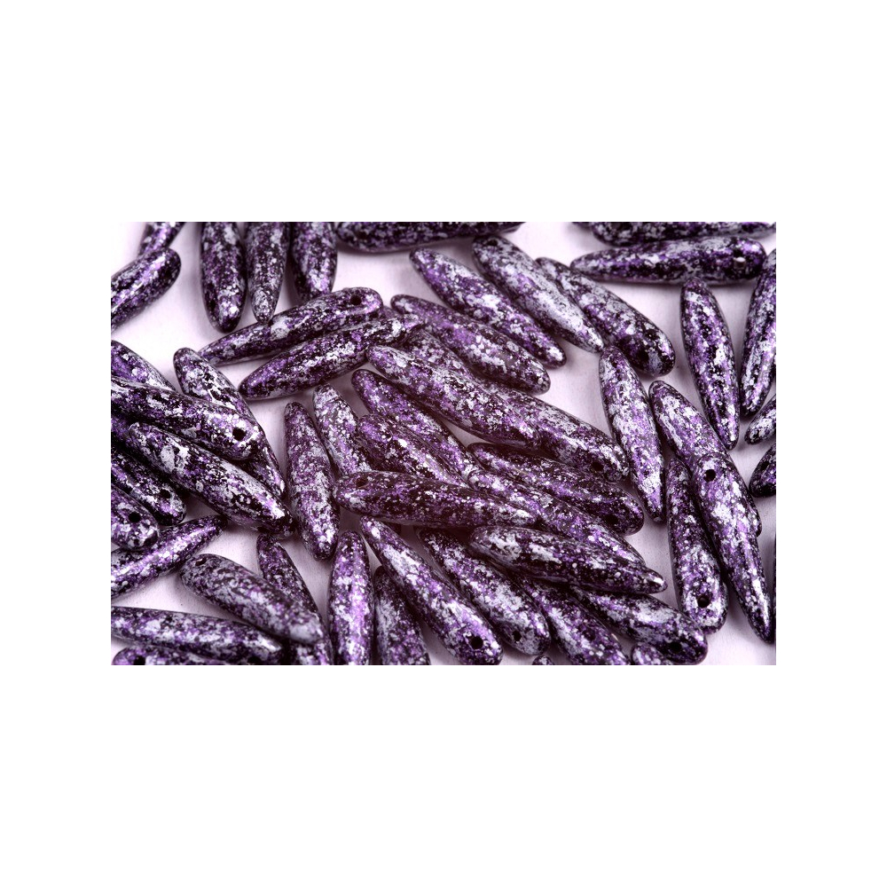 Fialová barva v kombinaci s efektem Tweedy Violet definuje tyto unikátní skleněné korálky s rozměry 5x16 mm pocházející z tradiční produkce značky Preciosa. Pro dosažení nejlepších výsledků při šití doporučujeme použít korálkovací jehly velikosti 10 nebo 12 v kombinaci s pevnou nití S-lon FIRE, která díky své odolnosti zajistí stabilitu i u prostorově výraznějších šperků. Průtah o velikosti 0,8 mm dovoluje vícenásobný průchod nití korálkem, což je klíčové pro složité prostorové konstrukce a pevné upevnění hrotu v designu.