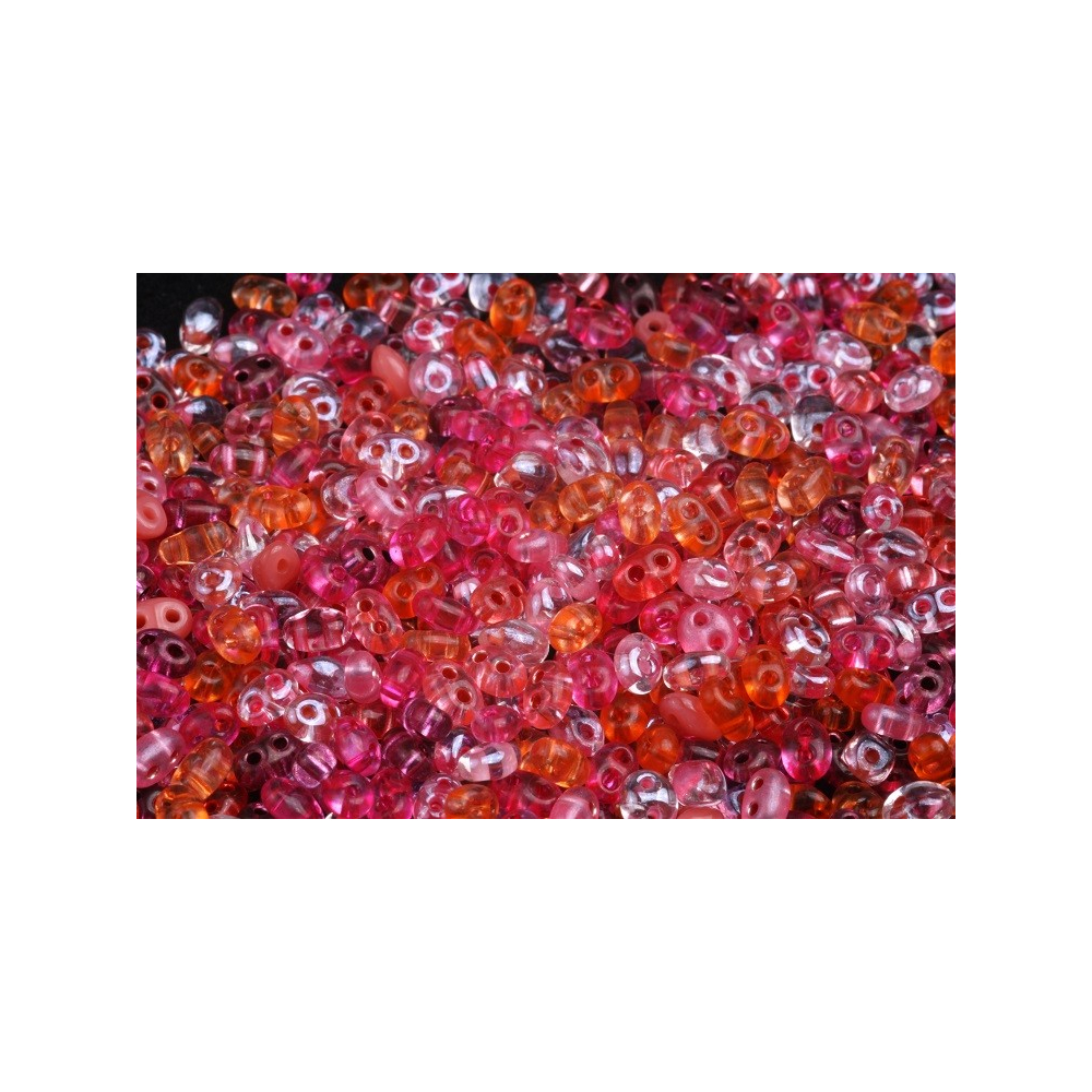 Hledáte způsob, jak dodat svým projektům hloubku a zajímavou texturu bez složitého kombinování mnoha různých tvarů? Dvoudírkové skleněné korálky PRECIOSA Twin™ v energickém růžovo-oranžovém mixu jsou ideálním řešením pro každou autorku, která chce zefektivnit své šití a dosáhnout profesionálních výsledků. Díky dvěma dírkám o průměru 0,8 mm umožňují tyto české skleněné korálky o rozměru 2,5x5 mm vytvářet pevné a prostorově zajímavé vzory mnohem rychleji než s běžným rokajlem, čímž řeší problém s přílišnou ohebností plochých šperků.