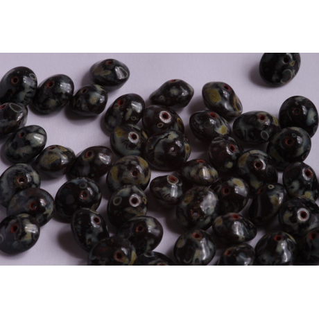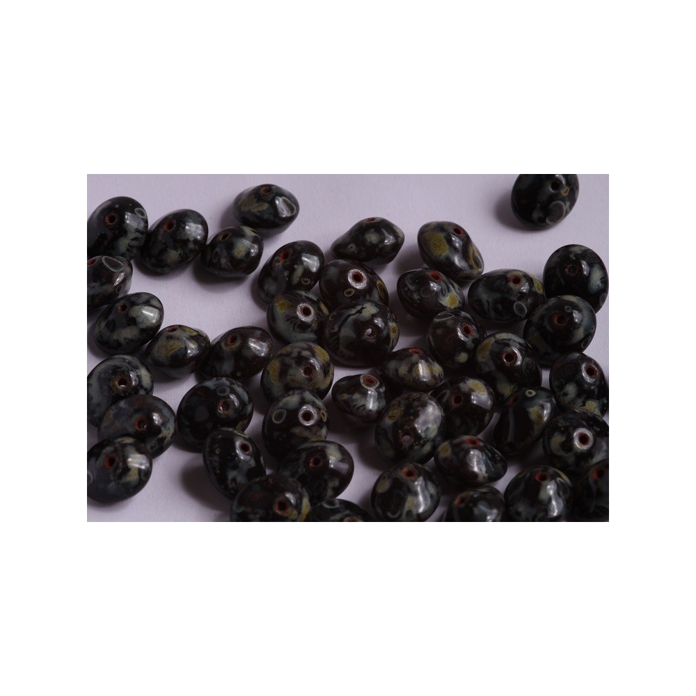 Povrchová úprava Jet Travertin Dark (kód 86805) vytváří na černém podkladu fascinující texturu připomínající přírodní kámen, což dodává šperkům žádaný vintage nádech. Tyto české korálky se vyznačují bohatou barevnou škálou a skvěle doplňují další komponenty, jako jsou například ohňovky (broušené korálky). Balení obsahuje 10 ks těchto precizně tvarovaných disků, které díky své univerzálnosti najdou uplatnění v mnoha kreativních projektech.