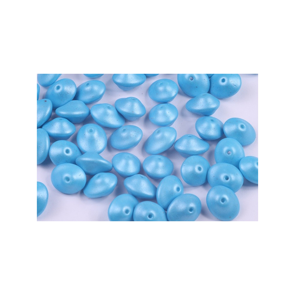 Akvamarínový odstín s jemným perleťovým odleskem vdechne život každému šperku, který postrádá hloubku a zajímavou texturu. Skleněné korálky Ufo o rozměru 7x11 mm z dílny Preciosa představují ideální řešení pro autory, kteří chtějí vystoupit z řady a dodat svým pracím unikátní prostorový efekt. Díky svému specifickému tvaru disku se skvěle vyjímají v kombinaci s klasickými tvary, jako jsou ohňovky (broušené korálky), se kterými vytvářejí zajímavý kontrast mezi hladkým perleťovým povrchem a broušenými ploškami. Pro dosažení harmonického vzhledu doporučujeme tyto modré tóny v designu doplnit bílou nebo křídovou barvou, případně zvolit výrazný kontrast s červeným siamem.