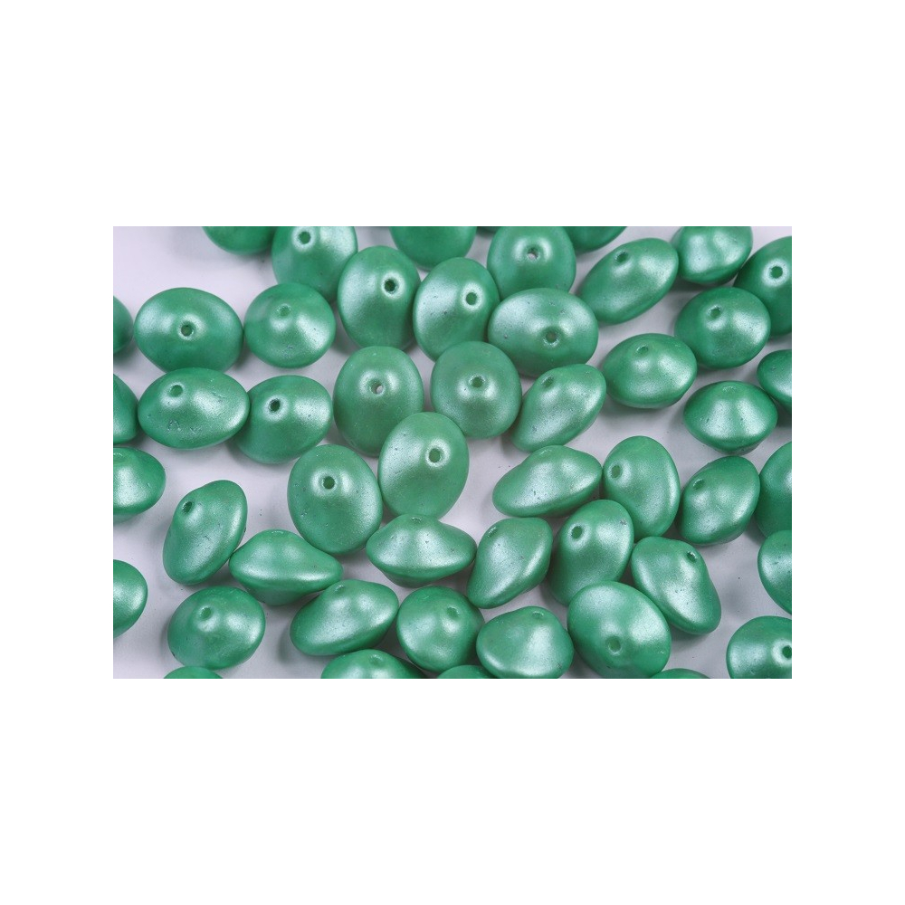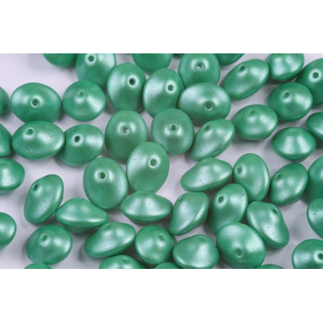 Světle zelená barva s perleťovým finišem definuje tyto skleněné korálky Preciosa ve specifickém tvaru Ufo o rozměrech 7x11 mm. Tento lisovaný tvar z tradiční české produkce vyniká precizním průtahem o velikosti 0,8 mm, který je ideální pro použití s materiály, jako jsou nylonové nitě N1–N5 nebo vysoce pevná S-lon FIRE. Díky svému unikátnímu diskovitému profilu se skvěle hodí pro prostorové obšívání nebo jako distanční prvky v kombinaci s rokajlem Preciosa 11/0 či broušenými ohňovkami. V balení naleznete 10 ks těchto kvalitních komponentů.