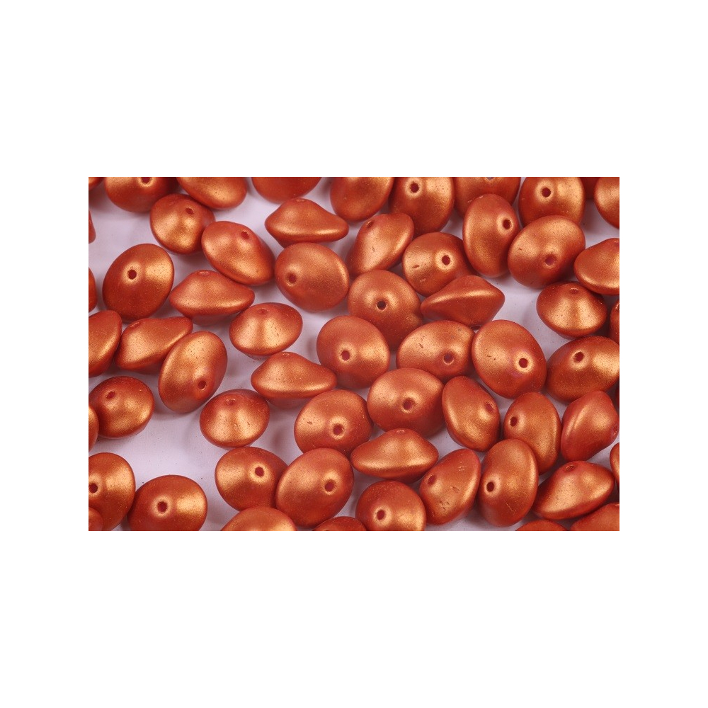 Terakotová barva se zlatavým odleskem přináší řešení pro každého tvůrce, který bojuje s vizuální plochostí svých projektů. Tyto skleněné korálky Preciosa ve tvaru Ufo okamžitě přitáhnou pozornost díky svému specifickému diskovitému profilu a luxusnímu metalickému povrchu Gold Shine Brick Red.