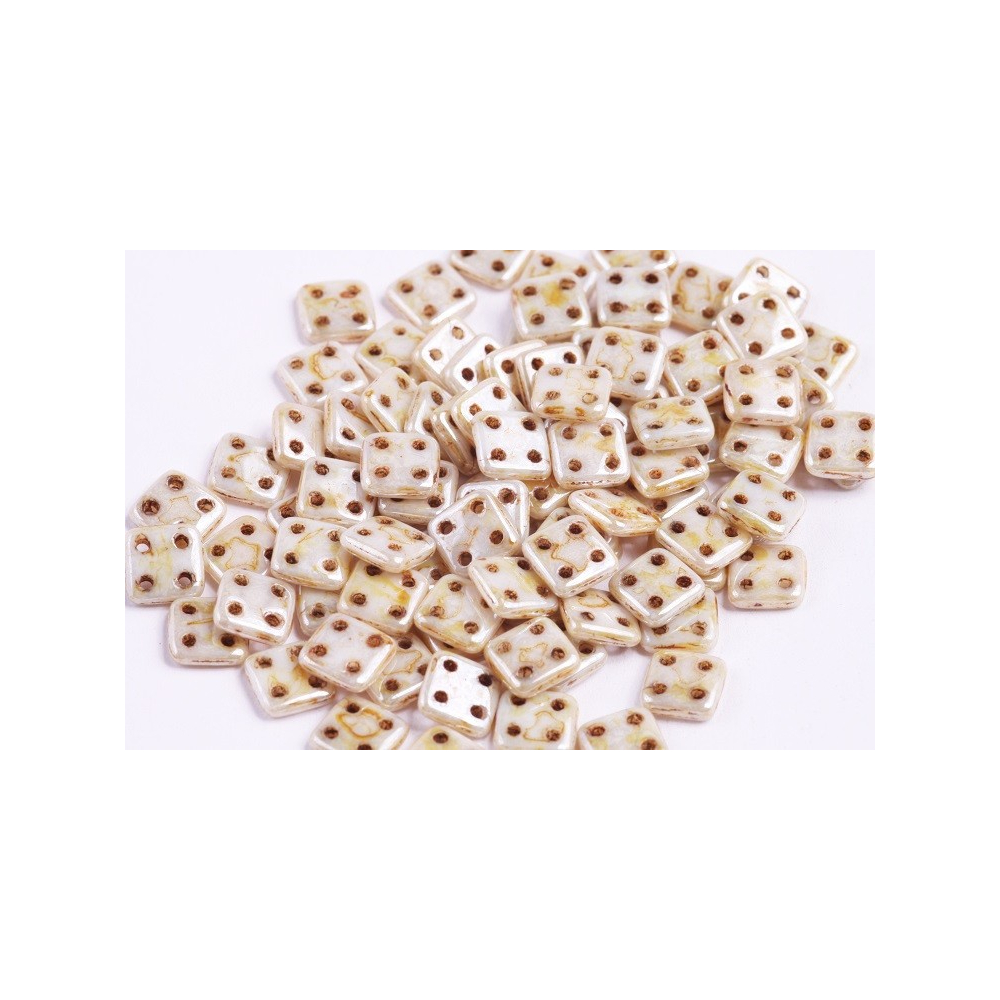 Objevte nekonečné možnosti kreativního šperkařství s Quadra Tile, unikátními skleněnými mačkanými korálky se čtyřmi otvory, které nabízejí další propracované vzory. Tyto čtvercové korálky o velikosti 6x6x1,8 mm pocházejí z tradiční české výroby a jsou ideální pro pokročilé techniky šití, vrstvené šperky a geometrické vzory.