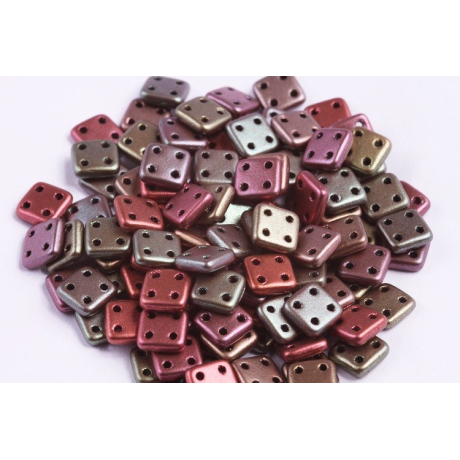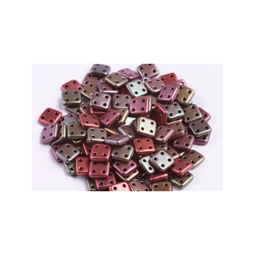 Objevte nekonečné možnosti kreativního šperkařství s Quadra Tile, unikátními skleněnými mačkanými korálky se čtyřmi otvory, které nabízejí další propracované vzory. Tyto čtvercové korálky o velikosti 6x6x1,8 mm pocházejí z tradiční české výroby a jsou ideální pro pokročilé techniky šití, vrstvené šperky a geometrické vzory.