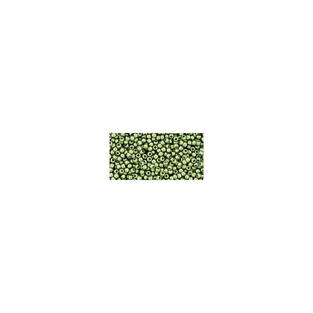Zelenkavý metalický odlesk varianty HYBRID ColorTrends: Metallic - Greenery přináší do světa korálkování svěžest a eleganci přírodních tónů. Tento japonský rokajl vyniká hloubkou barvy, která v kombinaci s jemným kovovým finišem vytváří na povrchu hotového šperku fascinující hru světla. Skleněný materiál nejvyšší kvality zaručuje, že si vaše umělecké výtvory zachovají svůj luxusní vzhled po dlouhou dobu.