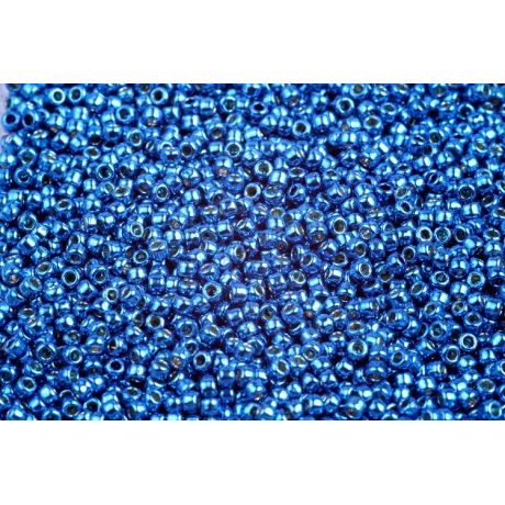 Permafinish - Galvanized Ocean Blue v podání japonského výrobce TOHO představuje vrchol preciznosti v barvení skla, který dodá vašim šperkům hloubku oceánu a kovový odlesk. Tyto kulaté korálky typu Round 11/0 o velikosti 2,2 mm vynikají naprostou uniformitou, která je výsledkem dlouholeté japonské tradice sahající až do roku 1950. Díky technologii PermaFinish je jejich zářivě modrý povrch vysoce odolný proti otěru, což z nich činí ideální volbu pro luxusní šperky, které si mají uchovat svou krásu po dlouhá léta.
