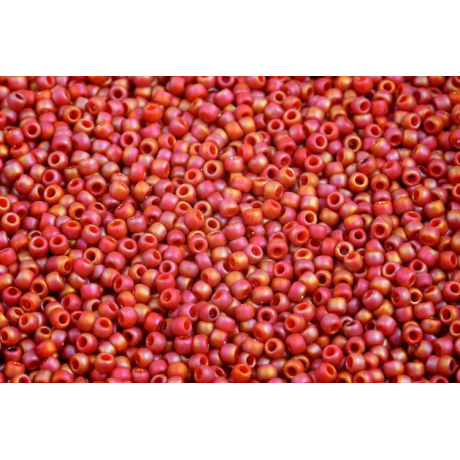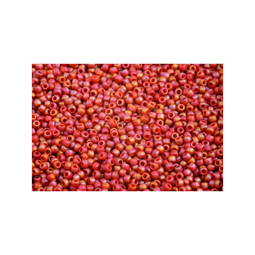Sytě oranžový tóny s jemným duhovým efektem přinášejí do světa korálkování energii a hřejivou atmosféru zapadajícího slunce. Japonská značka TOHO, která svou tradici precizního zpracování skla buduje již od roku 1950, nabízí v řadě Round 11/0 naprostou špičku mezi skleněnými korálky. Tato japonská tradice se odráží v neuvěřitelné uniformitě a konzistentní kvalitě každého jednoho kusu, což z nich činí nepostradatelný materiál pro náročnou detailní práci.