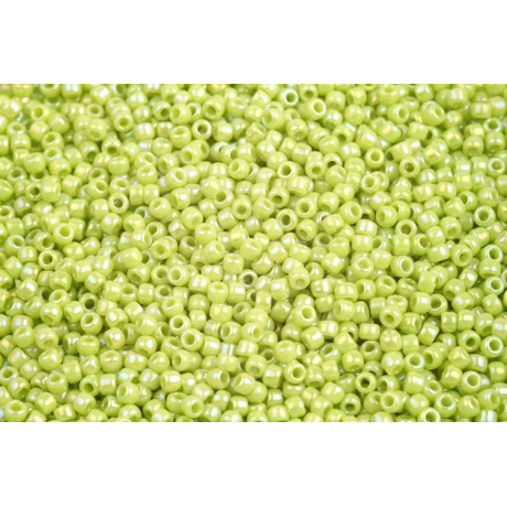 Barevné provedení s duhovým finišem dodává světle zeleným korálkům hloubku, která skvěle vynikne v kombinaci s tvary TOHO Demi Round nebo kostičkami TOHO Cube. Japonská tradice výroby od roku 1950 je zárukou, že povrchová úprava Opaque-Rainbow si zachová svůj lesk i při dlouhodobém nošení hotového šperku.