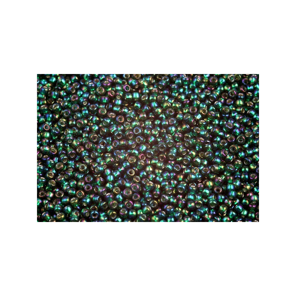 Sytá barva Silver-Lined Rainbow Green Emerald s kódem 2036 definuje tento špičkový japonský rokajl od světoznámého výrobce TOHO. Každý korálek velikosti 11/0 (2,2 mm) vykazuje absolutní uniformitu a precizní tvar, což je výsledek japonské řemeslné tradice započaté v roce 1950. Díky vnitřnímu stříbrnému průtahu a duhovému finiši získávají korálky mimořádnou hloubku a dynamický lesk, který se mění podle dopadu světla.