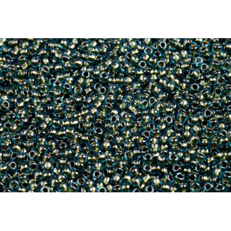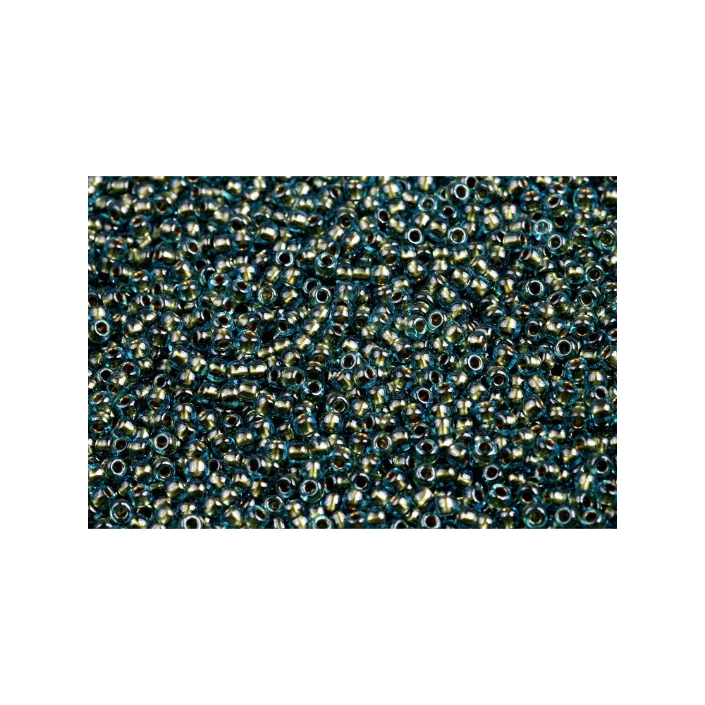 Kombinace transparentního aqua skla a vnitřního zlacení vytváří fascinující hloubku, která dodává hotovým šperkům luxusní a nadčasový charakter. Tato barevná varianta TR-11-284 se skvěle doplňuje s dalšími typy korálků z rodiny TOHO, zejména s válcovitými Treasure pro docílení plochých struktur nebo s Demi Round pro detailní texturování okrajů. Pro odvážnější geometrické kompozice a střapce doporučujeme kombinaci s tyčinkami Bugle, které s řadou Round harmonicky ladí.