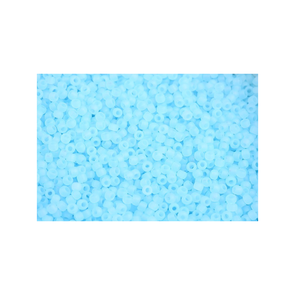 Akvamarín s jemným matným povrchem v provedení Ceylon Frosted Aqua představuje špičku v oblasti japonského rokajlu. Tento kulatý korálek o velikosti 11/0 (2,2 mm) od legendárního výrobce TOHO vyniká naprostou uniformitou a precizností, díky které jsou výsledné šperky dokonale symetrické a profesionální. Velký vnitřní průtah 0,8 mm umožňuje snadnou práci při technikách vyžadujících více průchodů nitě, jako je peyote stitch nebo brick stitch, kde tyto korálky skvěle doplňují i jiné geometrické tvary, například Miyuki Tila v kombinovaných vzorech.