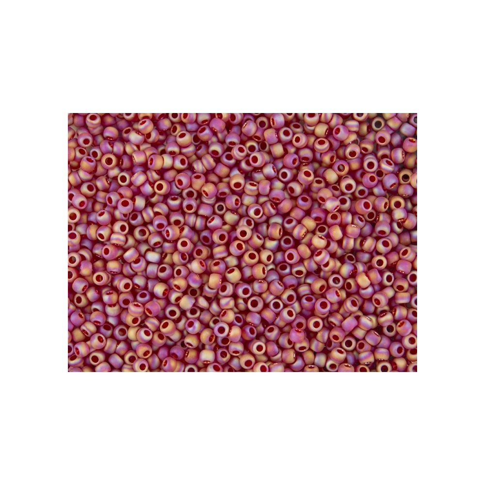 Sytě rubínový odstín s jemným matným finišem definuje tyto prémiové japonské korálky TOHO Round 11/0 v barevném provedení Trans-Rainbow-Frosted Ruby. Každý jednotlivý kus nese odkaz precizního japonského řemesla, které se v rodinné firmě TOHO zdokonaluje již od roku 1950. Díky unikátní technologii výroby získává sklo specifickou hloubku, která v kombinaci s duhovými odlesky vytváří na povrchu šperku fascinující hru světla a stínu.