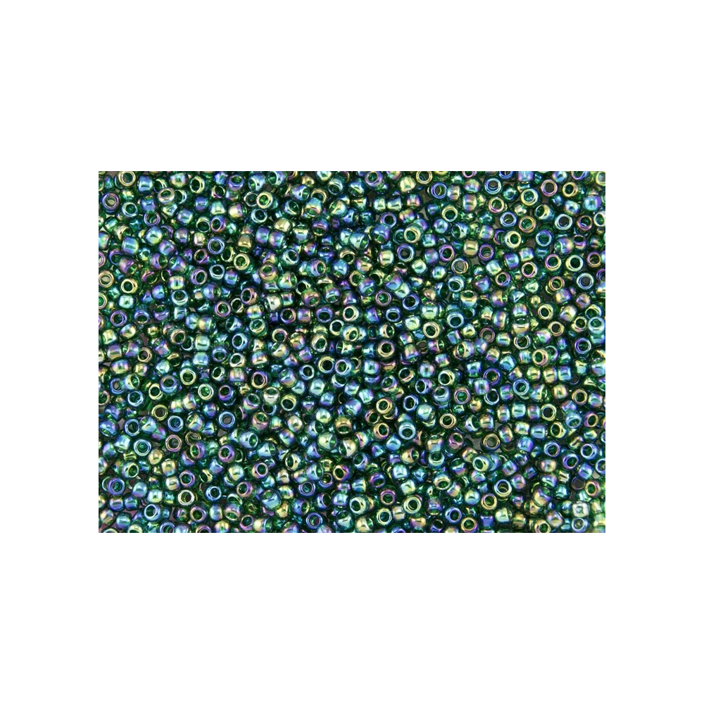 Smaragdově zelená hlubina s odlesky polární záře ožívá v každém detailu těchto precizních japonských korálků. TOHO Round 11/0 v odstínu Trans-Rainbow Green Emerald přináší do vašich projektů magickou hru barev, kde se sytá zeleň potkává s duhovými akcenty fialové a modré. Tento japonský rokajl je synonymem pro dokonalou uniformitu, která zaručuje, že každý šperk bude působit profesionálně a symetricky. Krásně ladí s neutrálním akcentem v barvě černý jet.