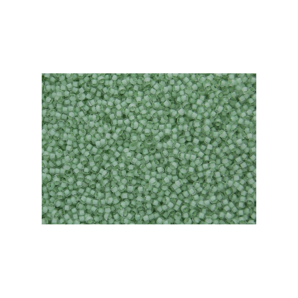 Neonově zelený vnitřní průtah v kombinaci s čirým sklem tvoří u korálků TOHO Round 11/0 v odstínu Inside-Color Crystal/Neon Sea Foam Lined fascinující vizuální efekt. Tento specifický typ japonského rokajlu vyniká svou schopností rozzářit jakýkoliv šitý šperk díky zářivému jádru, které prosvítá skrze krystalově čistou stěnu korálku. Na rozdíl od běžného rokajlu nabízí značka TOHO výjimečnou uniformitu a přesnost, což je výsledek dlouholeté tradice japonské výroby sahající až do roku 1950.