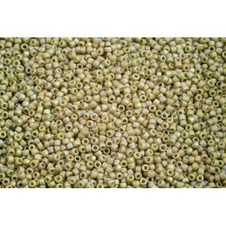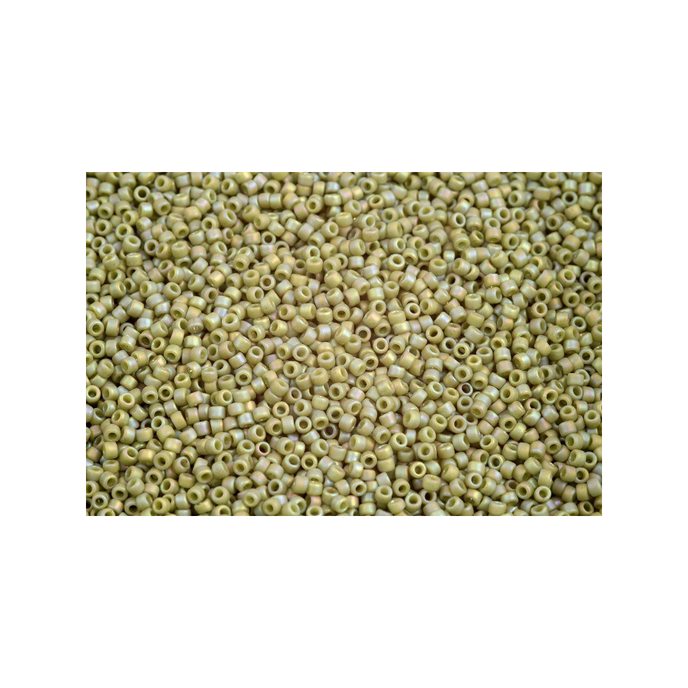 Povrchová úprava Semi Glazed Rainbow - Honeydew (kód 2632F) dodává skleněnému základu jemný saténový lesk s duhovými odlesky, který vynikne v jemných květinových i moderních minimalistických kompozicích. Pro výrazný kontrast v designu zkombinujte tento odstín s tmavým bronzem, zatímco barva vitrail podpoří jeho harmonický duhový charakter a stříbrná poslouží jako elegantní neutrální akcent. Tato barevná varianta TR-15-2632F se výborně doplňuje s Miyuki Tila při tvorbě širokých náramků, kde drobný rokajl slouží k preciznímu vykrytí mezer a začištění okrajů.