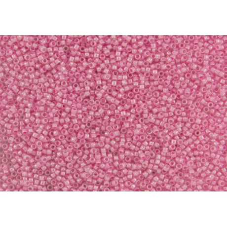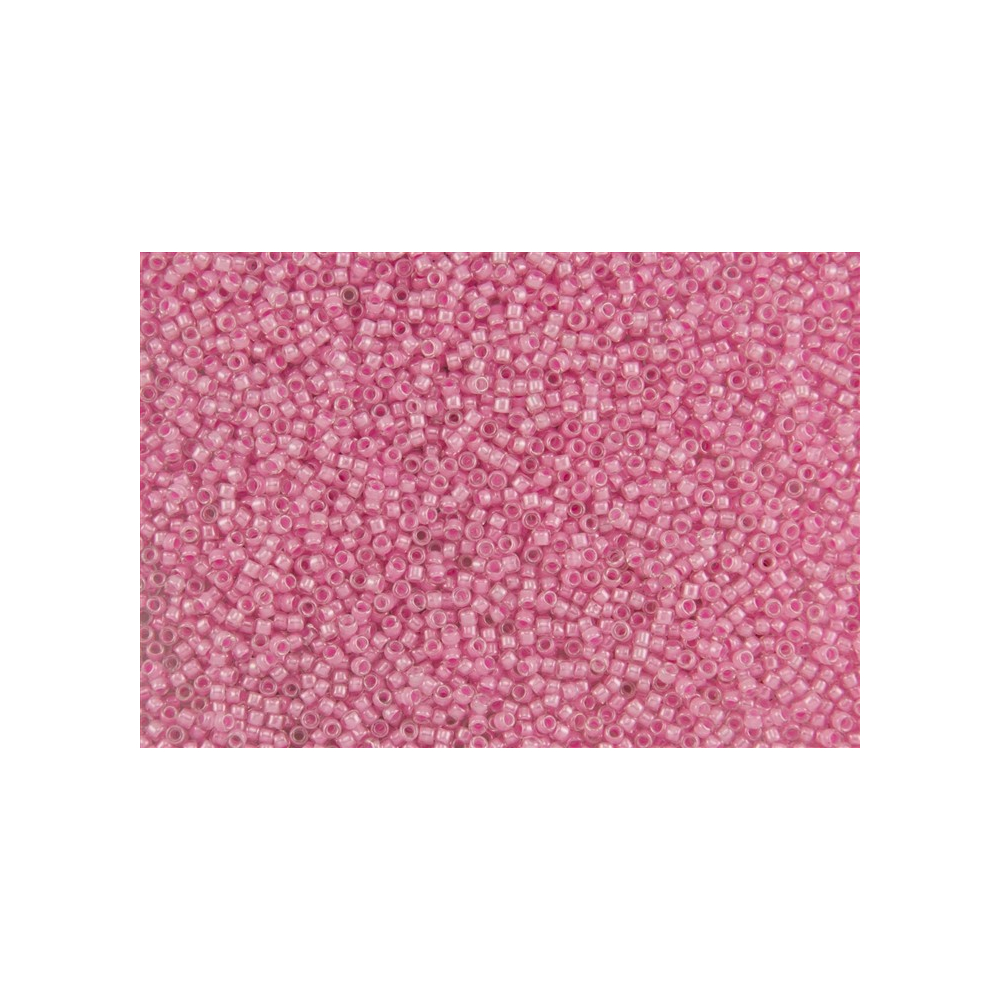 Transparentní sklo s jemným vnitřním průtahem v odstínu Inside-Color Crystal/Cotton Candy Lined propouští světlo tak, aby zdůraznilo pastelové jádro korálku. Velký vnitřní průtah 0,7 mm je unikátní vlastností značky TOHO, která umožňuje vícenásobné provlečení nitě i u takto malé velikosti. To je klíčové pro stabilitu složitých konstrukcí a detailní lemování větších kabošonů.