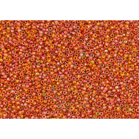 Inside-Color Jonquil/Hyacinth Lined je fascinující barevná kombinace, která dodává těmto drobným japonským korálkům hloubku a hravost. Průhledné sklo se žlutým nádechem a sytě oranžovo-červeným vnitřním průtahem vytváří při dopadu světla zářivý efekt, který okamžitě oživí každý váš autorský projekt. Co mě na nich nejvíc baví, je právě ten proměnlivý barevný tón, který v ploše šperku působí velmi organicky a teple.