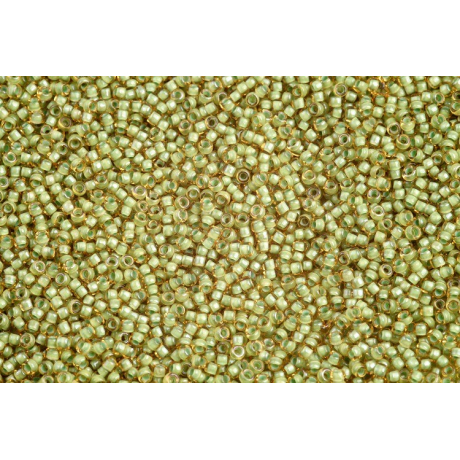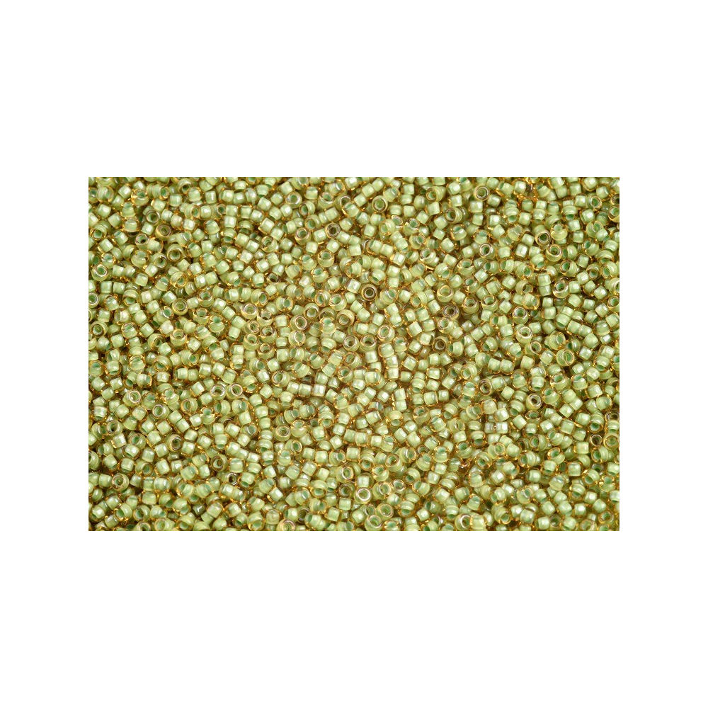 Svěží jarní louka zalitá ranním sluncem se zrcadlí v každém drobném korálku této unikátní řady. Japonský rokajl TOHO Round 15/0 v jemném provedení Inside Color Jonquil Mint Lined přináší do vaší tvorby nevídanou hloubku díky barevnému jádru, které prosvítá skrze čiré sklo. Tato barva evokuje křehkost přírody a dodává šperkům nádech luxusu a čistoty.