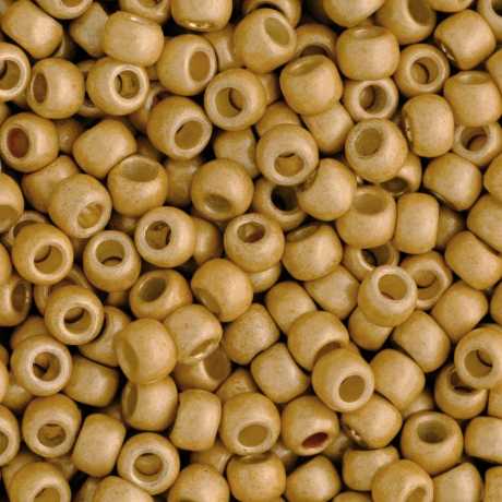Matte Galvanized Starlight v odstínu jemného šampaňského zlatá přináší do vaší tvorby pověstnou japonskou preciznost a luxusní matný vzhled. Tyto skleněné korálky TOHO Round 8/0 o průměru 3 mm vynikají naprostou tvarovou uniformitou, díky které jsou nepostradatelné pro techniky peyote stitch, brick stitch nebo tkaní na stavu. Jejich extra velký průtah o rozměru 1,3 mm umožňuje snadné navlékání i bez použití tenké jehly a nabízí nekonečné možnosti při kombinování s plochými korálky Miyuki Tila v moderních geometrických náramcích.