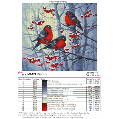 Plátno pro vyšívání korálky Velikost cca 30 x 27 cm Počet barev: 16 Vzor: Zvířata Materiál:...