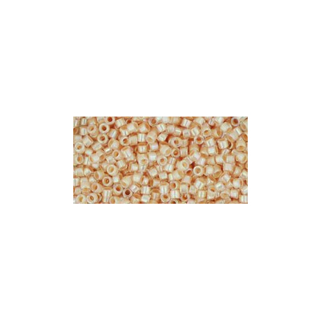 Jemná broskvová barva s duhovým odleskem v kombinaci s křišťálovým sklem dělá z těchto korálků TOHO Treasure 12/0 v odstínu Inside-Color Rainbow Crystal/Apricot Lined (kód 794) naprostý skvost pro jemné projekty. Co mě na nich baví je ten vnitřní barevný průtah, který dodává celému designu hloubku, zatímco vnější duhový povrch hází elegantní odlesky při každém pohybu ruky.