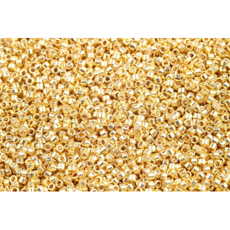 MIYUKI Delica 15/0 Velikost cca 15/0 - 1,3 mm Velikost průtahu: 0,65 mm Balení: 1 g Barva: GOLD...