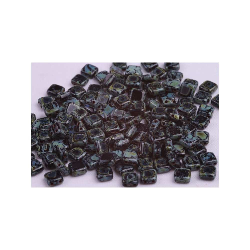 Tile beads - mačkané dvoudírkové čtverečky 6 x 6 mm