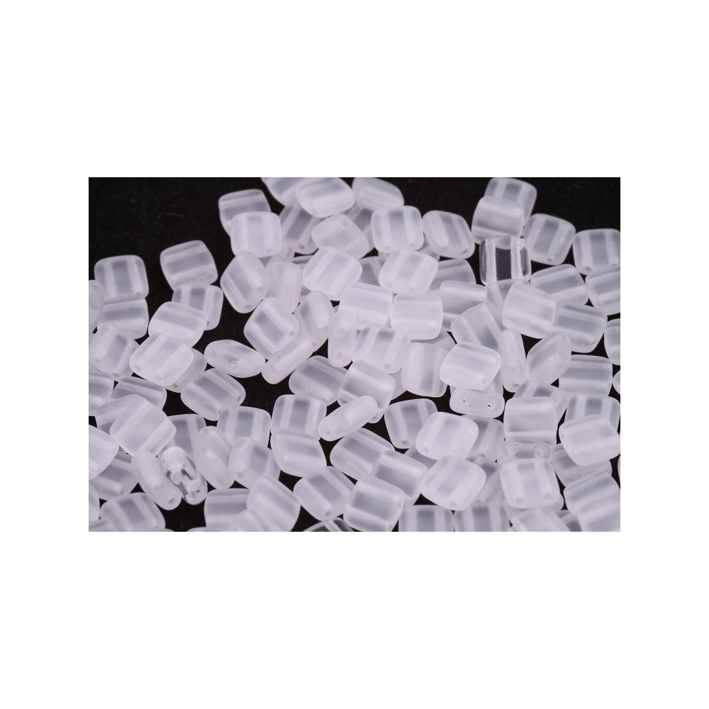 Matná úprava v odstínu Crystal mat propůjčuje korálkům vzhled připomínající opracovaný led nebo mořské sklo. Tato neutrální barva je ideální pro kombinování s výraznými odstíny rokajlu nebo jako základ pro minimalistické designy, kde vynikne geometrický tvar Tile beads. Díky své průsvitnosti krásně pracují se světlem, které rozptylují do měkkého sametového lesku.