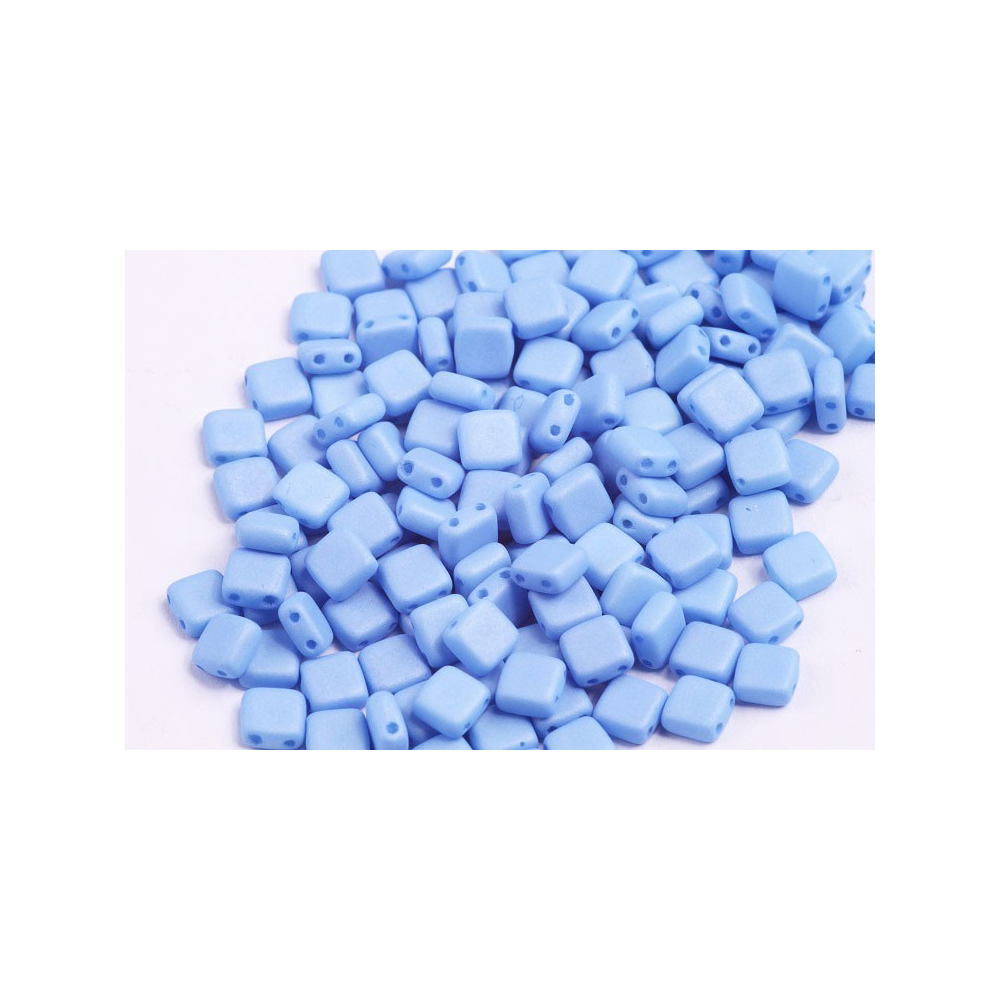 Světle modrá barva s hedvábným matným povrchem definuje tyto Tile beads o rozměru 6 x 6 mm. Tato ruční výroba z rodinné dílny Rutkovský navazuje na nejlepší tradice českého sklářství a přináší do vašich projektů preciznost a kvalitu. Díky dvěma dírkám jsou ideální pro geometrické vzory, kde skvěle fungují v kombinaci s korálky Matubo™ SuperDuo při tvorbě pevných mozaikových struktur.