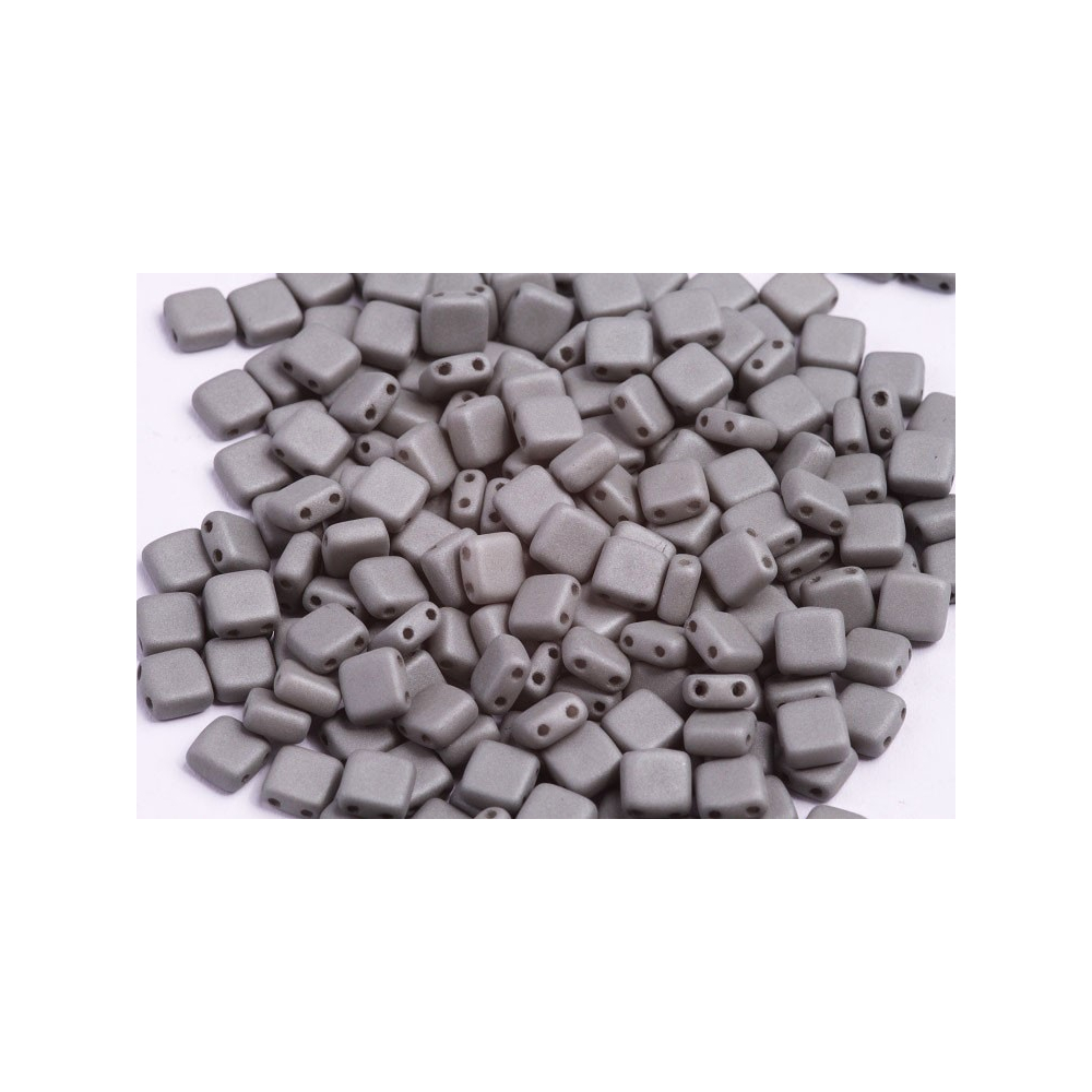 Šedá barva v kombinaci s matným hedvábným povrchem činí z těchto Tile beads nepostradatelný prvek pro každou pokročilou autorku šitého šperku. Tyto dvoudírkové čtverečky o rozměru 6 x 6 mm vynikají svou geometrickou přesností, která umožňuje vytvářet dokonale ploché a stabilní struktury, což je u jednodírkových alternativ často obtížně dosažitelné.